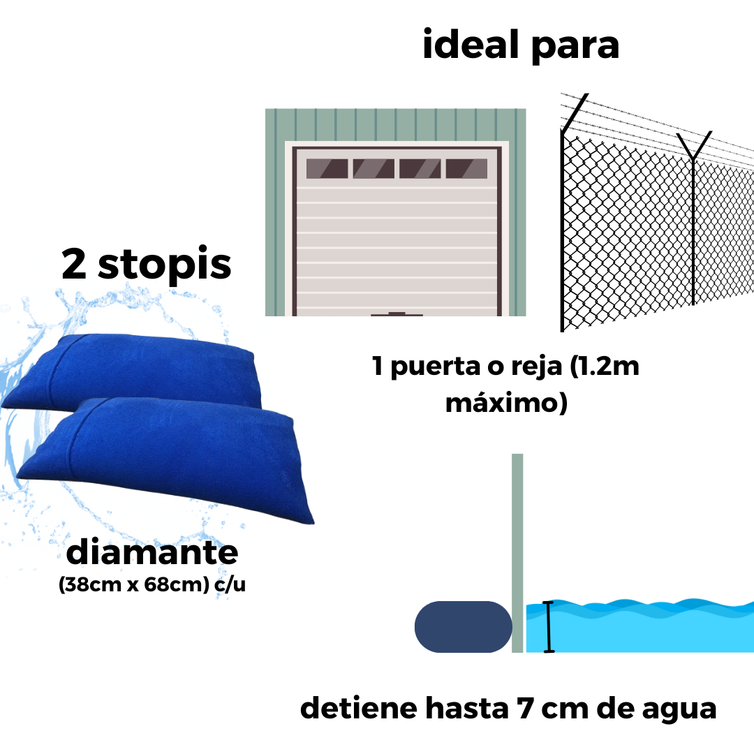 - STOPI bien colocado permitirá detener temporalmente una buena parte del agua que se pueda filtrar, sin embargo existe la posibilidad de pequeñas filtraciones y será necesario secarla si fuera el caso.