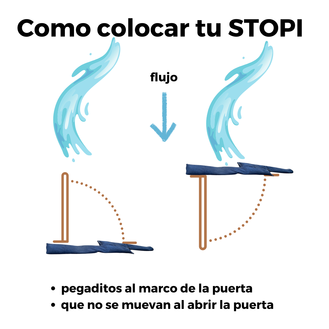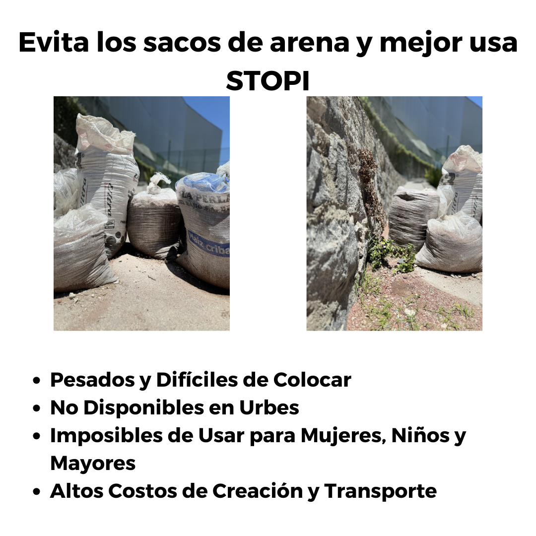 - STOPI bien colocado permitirá detener temporalmente una buena parte del agua que se pueda filtrar, sin embargo existe la posibilidad de pequeñas filtraciones y será necesario secarla si fuera el caso.